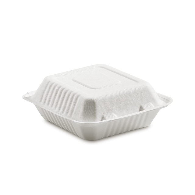 SC-81 | Clamshell Eco-Friendly Square Sugarcane Containers 8x8x3" - 200 Pcs